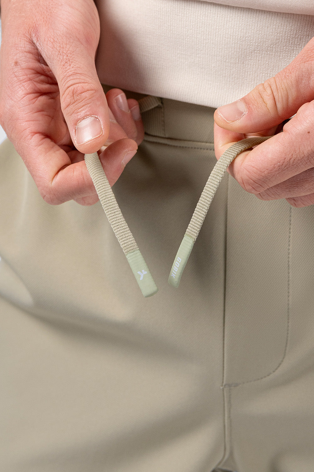 - Elastischer Bund mit integriertem Kordelzug.