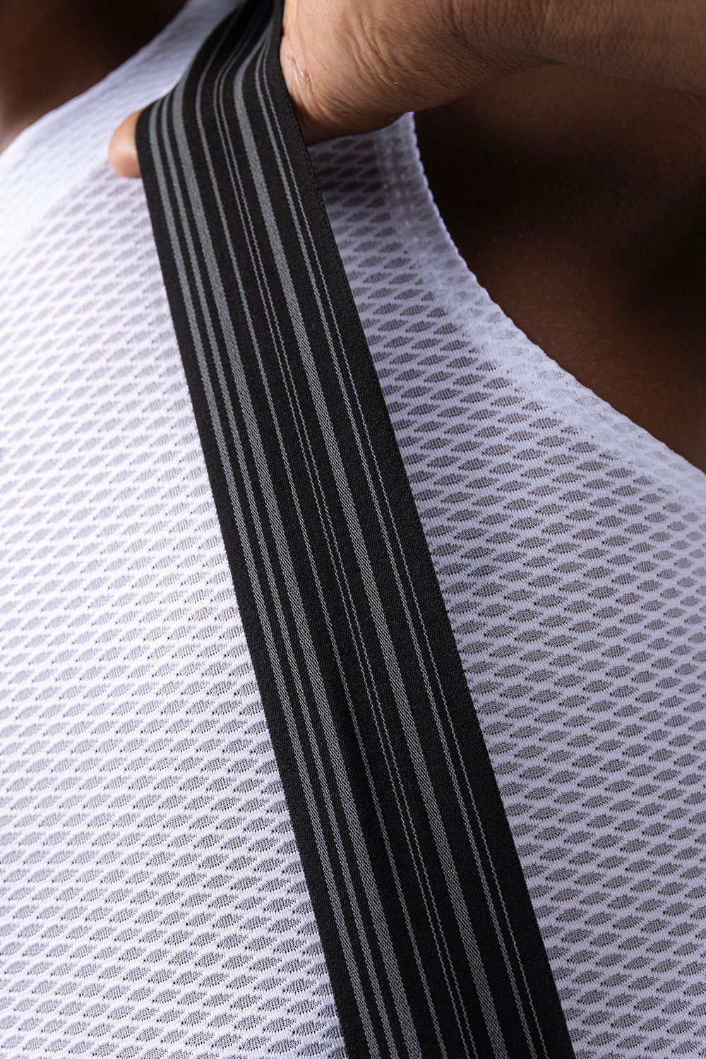 The new strap includes ergonomic tapes on the shoulders with increased width, processed with raw-edge cuts to eliminate unnecessary seams and improve adaptability. They incorporate graphene thread in their structure, which helps regulate temperature, neutralizes odors, and prevents moisture retention. In addition, the central opening at the back enhances the evacuation of body heat during the most demanding rides.