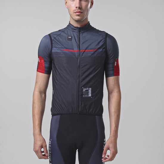 Gilet coupe-vent, léger et compact, idéal pour les descentes, les matinées fraîches ou les journées venteuses.